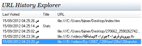 لێرهدا بهرنامهیهکم بۆ ئاماده کردوون بە ناوی ( Url history explorer ) کاری بهرنامهکه بریتیه له نیشاندانی ئهو ماڵپهر و فایلانهی که پێشتر کراونهتهوهو هەروەها دهتوانیت بیان بینیت و زانیاریان دهربارهی بزانیت و ههروهها دهتوانیت دووباره بیان کهیتهوه.