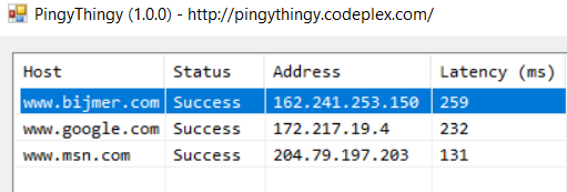 بەرنامەی ( PingyThingy 1.0 ) بەرنامەیەکی بچووک و سادەیە لە رێگایی ئەم بەرنامەوە دەتوانیت کۆمەڵیک ماڵپەرە بەیەکەوە داخڵی بەرنامەکە بکەیت و پینگیان بکەیت واتا ئاگاداربیت ماڵپەرەکان وەڵامیان هەیە یان نا یان کاردەکەن یان کارناکەن کە کاتی وەڵمدانەوەکەشتان بۆ دیاری دەکات.