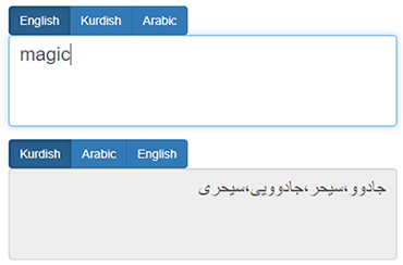 لە رێگایی ماڵپەری ( thekurdishdictionary ) دەتوانیت زۆر بە ئاسانی وشە وەرگێر بکەیت بۆ زمانەکانی سۆران، کرمانجی، عربی، ئینگلیزی، تورکی، فارسی، ئیسپانی و سویدی کە بە شێوەیەکی چرو پر زانیاریت دەداتێ دەربارەی هەر وشەیەکی وەرگێردراو.