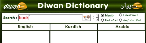 فەرهەنگی دیوان فەرهەنگێکی کوردیە و زۆر چاکە کە دەتوانێت وشە وەرگێر بکات لە نێوان سێ زمان ( کوردی، عربی، ئینگلیزی ).